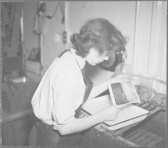 The photographs showcase women learning how to process films in mobile darkrooms, plotting aerial images and simulating work under active service conditions.